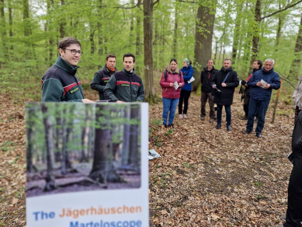 Following lectures and discussions at the Federal Ministry for Food and Agriculture, representatives of the Forest Europe Liaison in Bonn and the European Forest Europe Institute organised a field visit to the Jägerhäuschen (Hunter cottage) Forest, a verdant space located only 15 minutes from the Bonn city centre. After learning about climate change adaptation challenges and best practices in the forestry sector, participants were acquainted with Marteloscope, an exercise used in 22 European countries to raise awareness, communicate and even train future foresters in sustainable forest management, taking both the economic and ecological values of trees into account.
